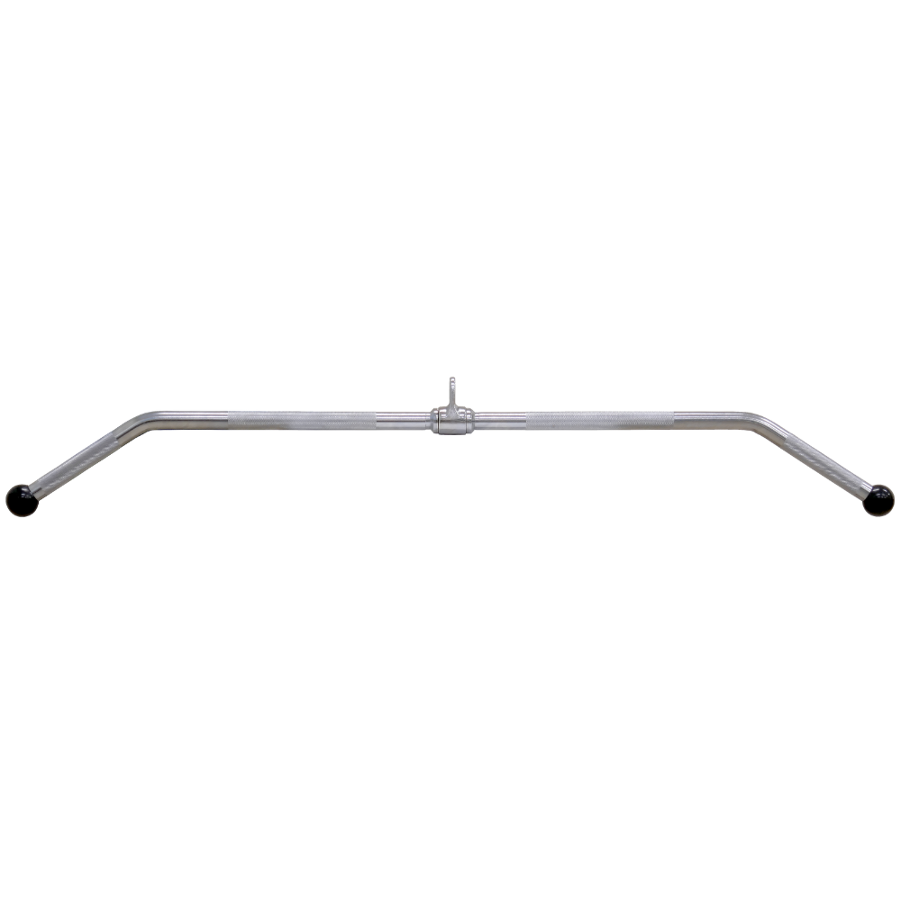 ●グリップ部分の絶妙な角度の屈曲により、ラットプルダウンなどの種目において、通常のバーであれば身体に当たる位置よりも、さらに深く引ききることができます。