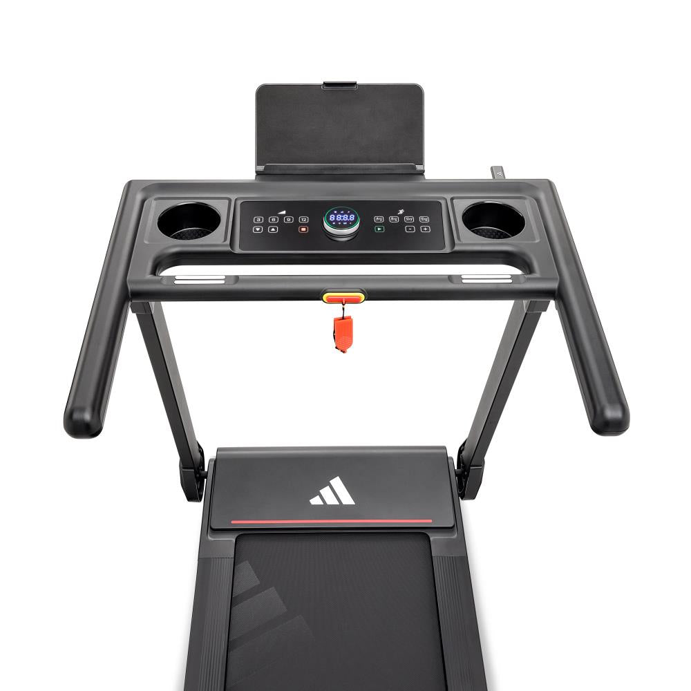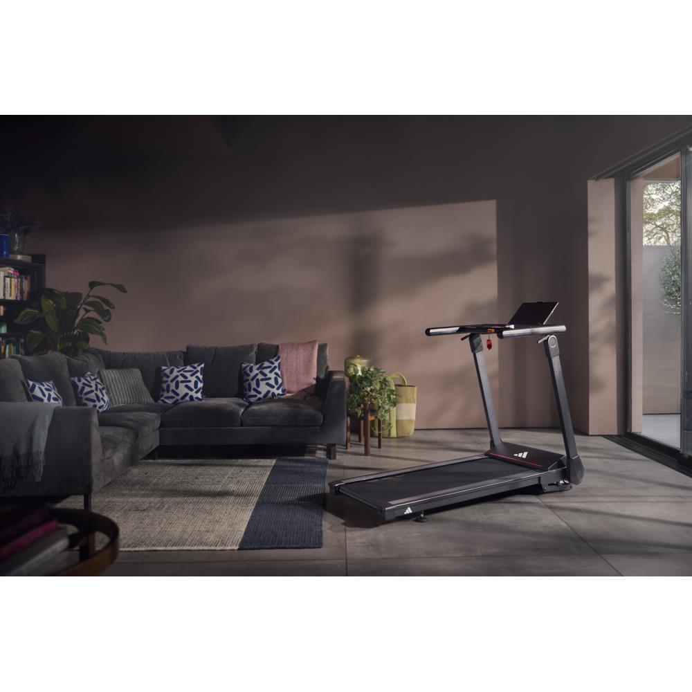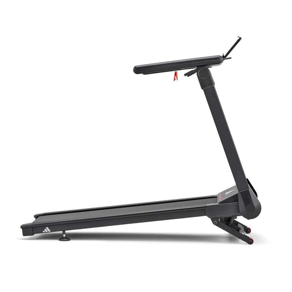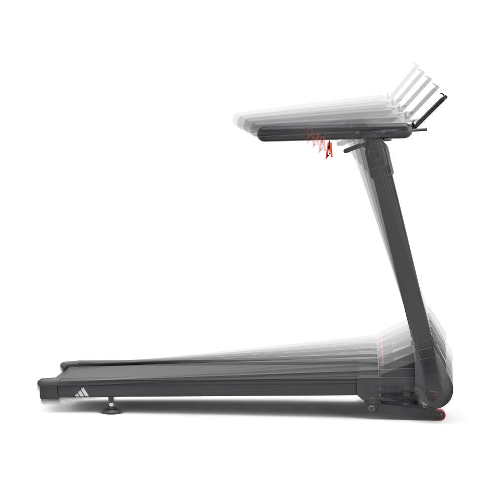 adidas T-1 トレッドミルは折りたたみ収納が可能。使用しない時はコンパクトに収納できます。省スペース性を重視するランナーにとって理想のランニングマシン。