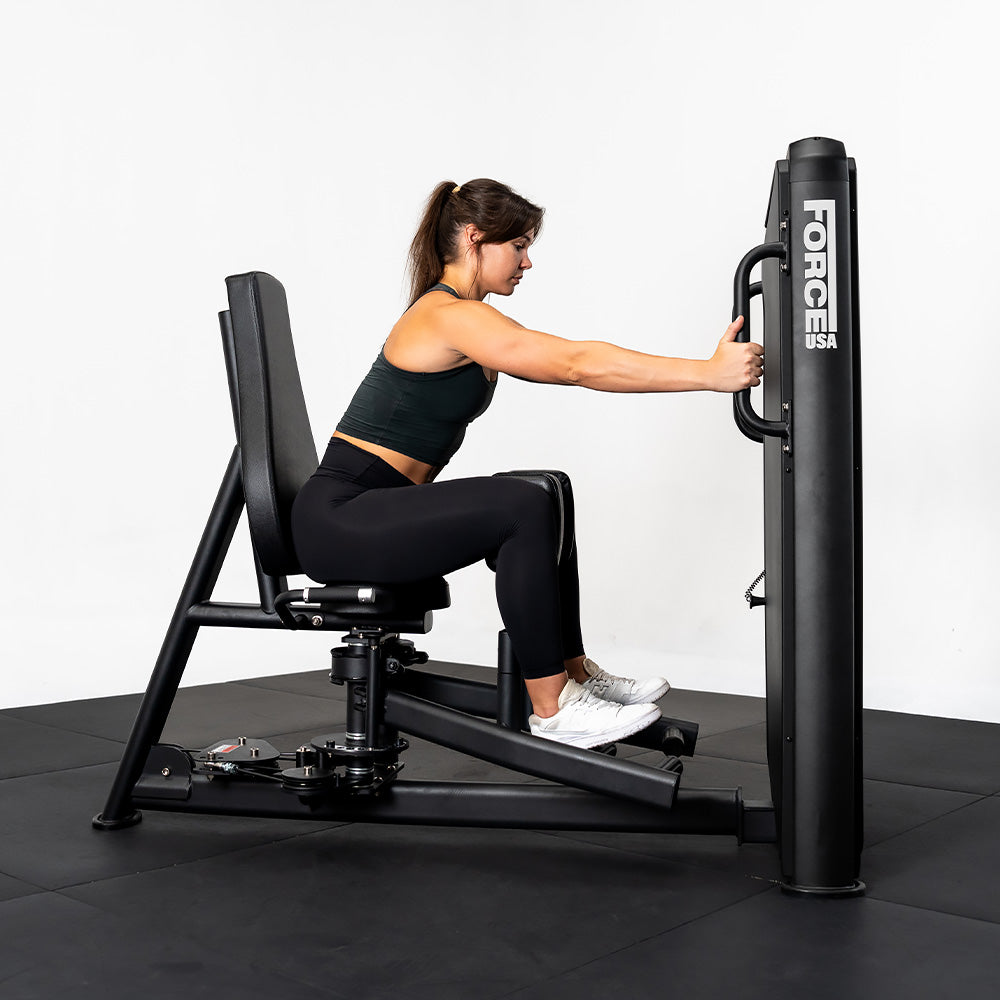 220ポンド(100kg)のウェイトスタックを搭載した本機は、下半身の筋肉に段階的に負荷をかけたいアスリートに最適です。筋肉量の増加を目指す場合でも、下半身の持久力向上を目指す場合でも、簡単に調整可能なウェイトスタックにより、抵抗をカスタマイズし、トレーニングの強度を容易に高めることができます。